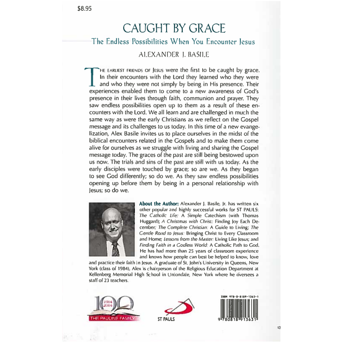 The earliest friends of Jesus were the first to be caught by grace. In their encounters with the Lord they learned who they were experiences enabled them to come to a new awareness of God's presence in their lives through faith, communion and prayer. They saw endless possibilities open up to them as a result of these encounters with the Lord. We all learn and are challenged in much the same way as were the early Christians as we reflect on the Gospel message and its challenges to us today. In this time of a new evangelization, Alex Basile invites us to place ourselves in the midst of the biblical encounters related in the Gospels and to make them come alive for ourselves as we struggle with living and sharing the Gospel message today. The graces of the past are still being bestowed upon us now. The trials and sins of the past are still with us today. As the early disciples were touched by grace; so are we. As they began to see God differently; so do we. As they saw endless possibilities opening up before them by being in a personal relationship with Jesus; so do we.