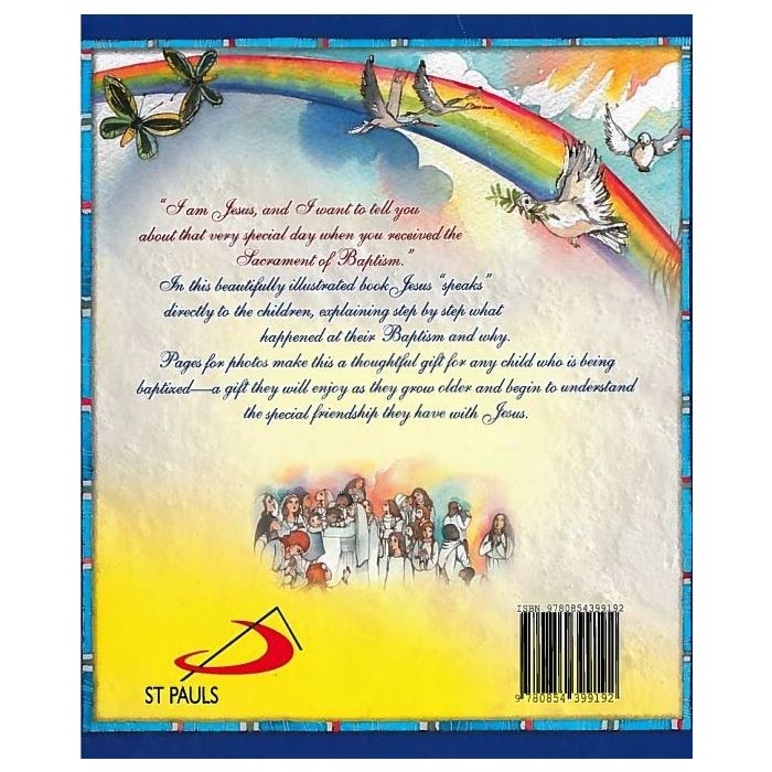 In this beautifully illustrated book, Jesus 'speaks' directly to children, explaining step by step what happened at their Baptism and why. Pages for photos make this a thoughtful gift for any child who is being baptised—a gift they will enjoy as they grow older and begin to understand the special friendship they have with Jesus.