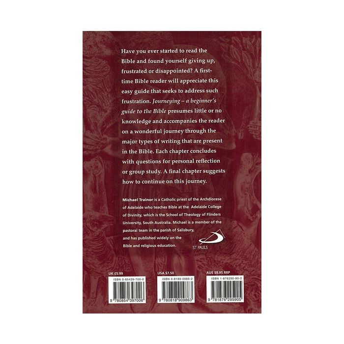 Have you ever started to read the Bible and found yourself giving up, frustrated or disappointed? A first time Bible reader will appreciate this easy guide that seeks to address such frustration. Journeying — a beginner's guide to the Bible presumes little or no knowledge and accompanies the reader on a wonderful journey through the major types of writing that are present in the Bible. Each chapter concludes with questions for personal reflection or group study. A final chapter suggests how to continue on this journey.
