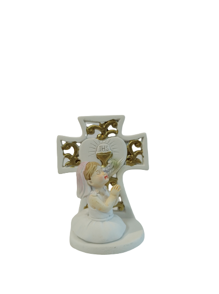 Resin Communion Plaque/Cross - Girl 3 Inch