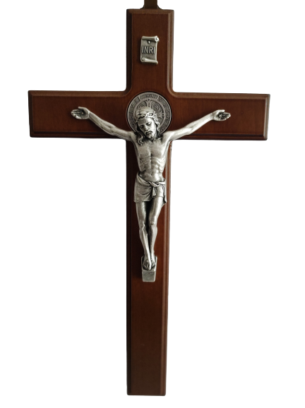 St. Benedict Wood Crucifix 9'' Metal
