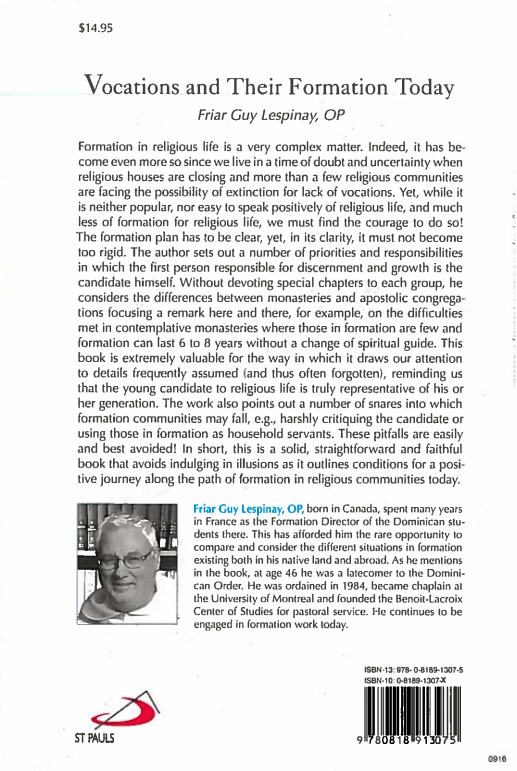 This book is extremely interesting for the way in which it draws our attention to details frequently assumed (and thus often forgotten), while at the same time considering the young candidate to religious life as representative of his generation. In short, this is a straightforward, solid and faithful book that avoids indulging in illusions and outlines the conditions for a genuine journey of conversion.