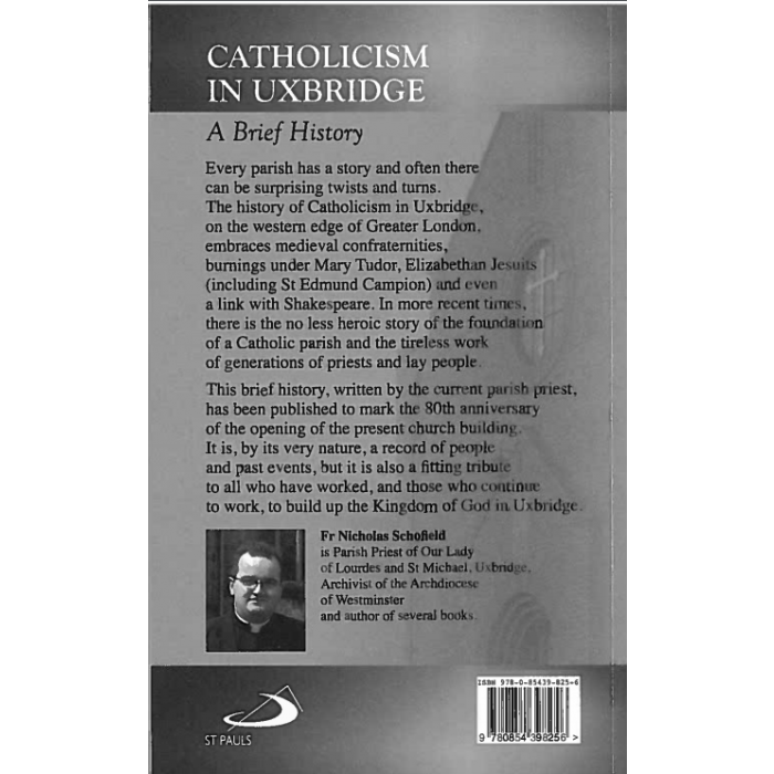 Every parish has a story and often there can be surprising twists and turns. The history of Catholicism in Uxbridge, on the western edge of Greater London, embraces medieval confraternities, burnings under Mary Tudor, Elizabethan Jesuits (including St Edmund Campion) and even a link with Shakespeare. In more recent times, there is the no less heroic story of the foundation of a Catholic parish and the tireless work of generations of priests and lay people. This brief history, written by the current parish priest, has been published to mark the 80th anniversary of the opening of the present church building. It is, by its very nature, a record of people and past events, but it is also a fitting tribute to all who have worked, and those who continue to work, to build up the Kingdom of God in Uxbridge.
