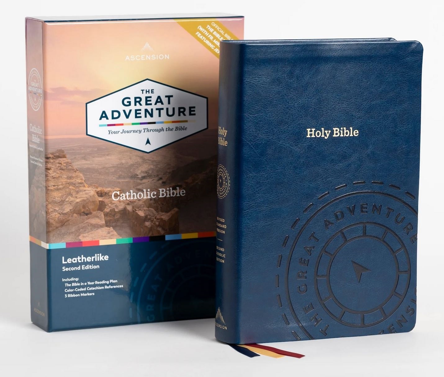 Newly Designed Full-Color Maps to help visualize Bible story locations. This Bible, beyond all its teaching features, is a complete Revised Standard Version - Second Catholic Edition Get the Bible that will help guide you through it. Understand Key Catholic Themes. Add this new weapon to your Catholic spiritual arsenal. Features A full-color Bible with a beautiful eye-catching design Each book of the Bible is color-coded with printed tabs, indicating where it belongs within The Bible Timeline. Twelve Timeline charts provide a visual overview of the Bible, including: important characters, Key Events, geography, major covenants, world rulers, and contemporary events in secular history.